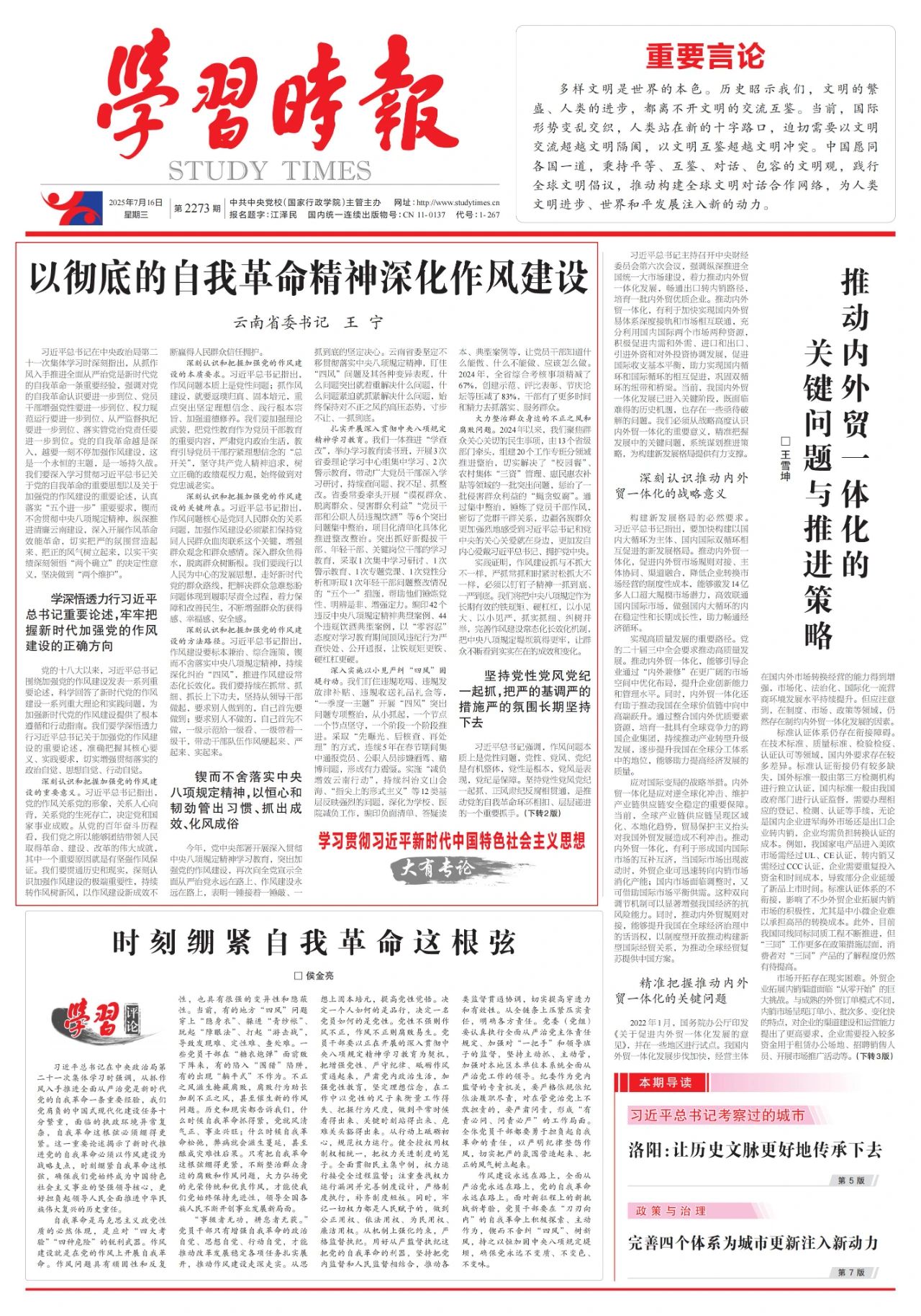 云南省委書(shū)記王寧署名文章