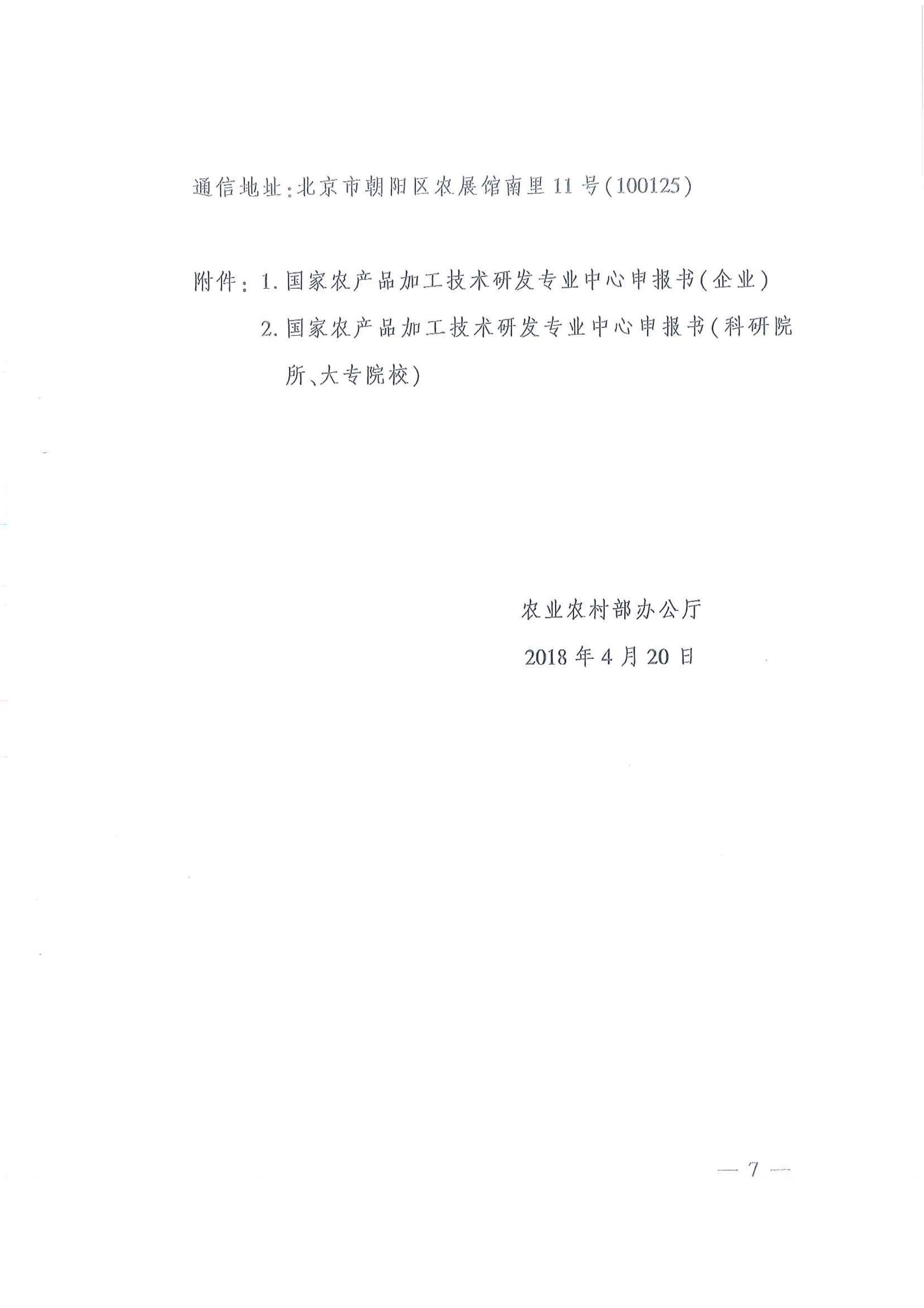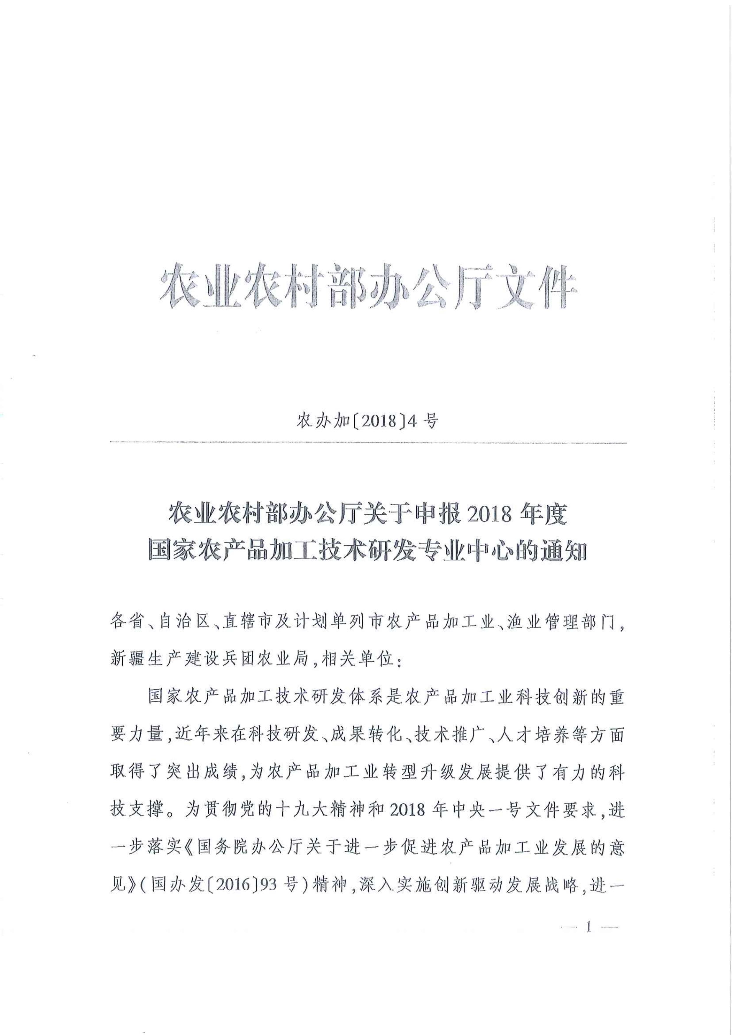云南省農(nóng)業(yè)廳辦公室轉(zhuǎn)發(fā)農(nóng)業(yè)農(nóng)村部辦公廳申報(bào)2018年度國家農(nóng)產(chǎn)品加工技術(shù)研發(fā)專業(yè)中心工作文件的通知