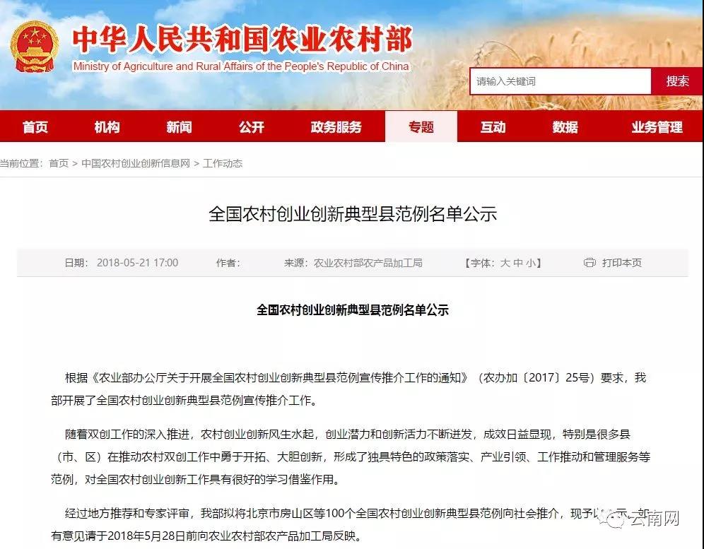 經過地方推薦和專家評審,農業(yè)農村部擬將北京市房山區(qū)等100個全國農村創(chuàng)業(yè)創(chuàng)新典型縣范例向社會推介,現予以公示。