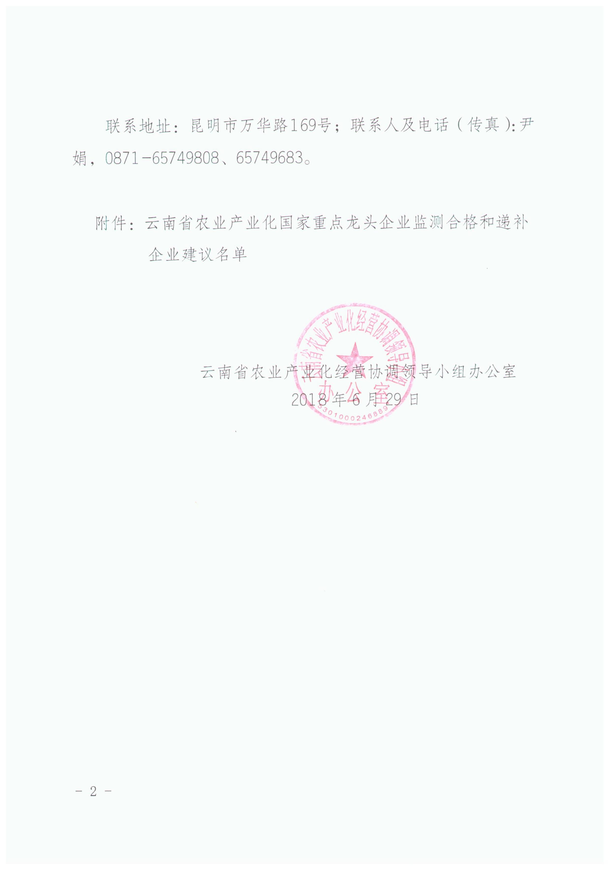 云南省農(nóng)業(yè)產(chǎn)業(yè)化國家重點龍頭企業(yè)運行監(jiān)測合格和遞補企業(yè)建議名單的公示