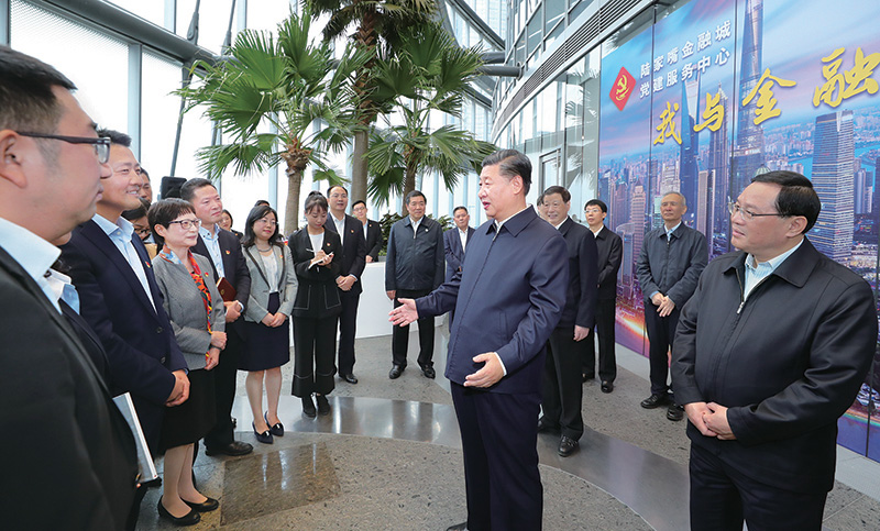 2018年11月6日至7日,中共中央總書記、國家主席、中央軍委主席習(xí)近平在上??疾?。這是6日上午,習(xí)近平在上海中心大廈22層的陸家嘴金融城黨建服務(wù)中心,同正在聯(lián)合開展主題黨日活動(dòng)的企業(yè)黨員親切交談。