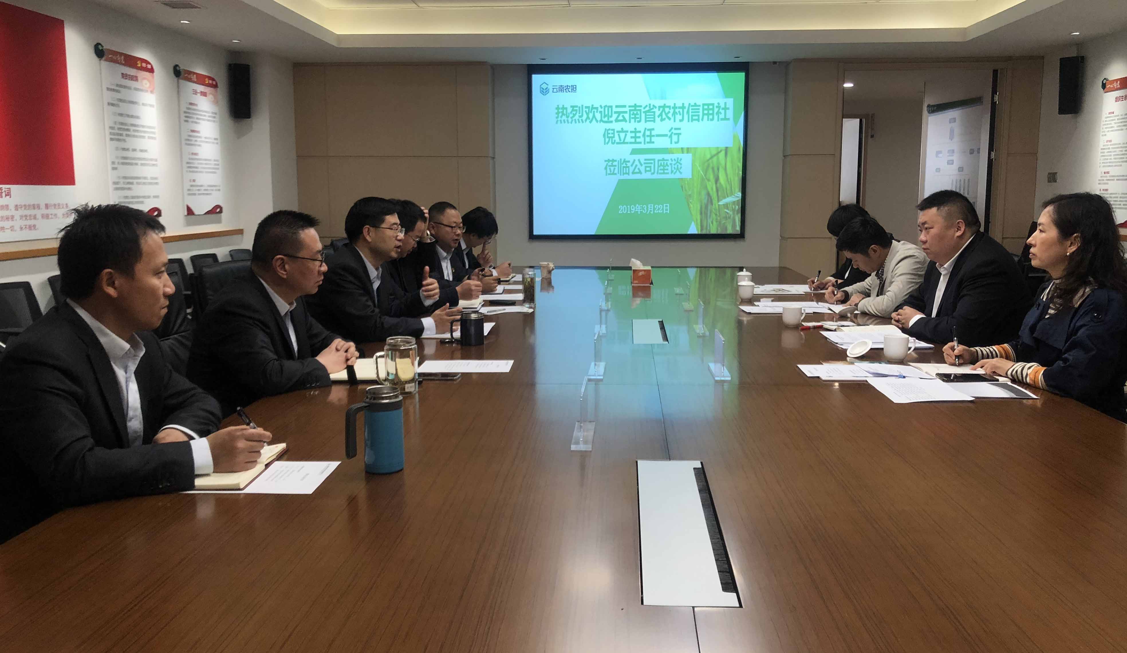 3月22日,云南省農(nóng)村信用社聯(lián)合社主任倪立率業(yè)務(wù)發(fā)展部、信貸管理部、昆明市農(nóng)信社到云南農(nóng)擔(dān)公司座談,公司郭影董事長、杜開波總經(jīng)理、廖寅皓副總經(jīng)理及風(fēng)控、業(yè)務(wù)、機構(gòu)等部門參加會議。會上,雙方就銀擔(dān)合作情況進(jìn)行全面交流總結(jié),并對下一步深化合作達(dá)成一致意見。