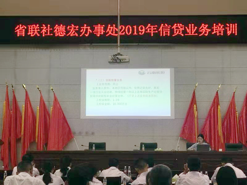 8月9日,為進(jìn)一步深化銀擔(dān)合作,助力三農(nóng)發(fā)展,德宏州農(nóng)信社開(kāi)展信貸業(yè)務(wù)培訓(xùn),參訓(xùn)人員為5個(gè)行社分管領(lǐng)導(dǎo)、全體信貸人員、風(fēng)險(xiǎn)人員等共263人,借此機(jī)會(huì),德宏辦事處業(yè)務(wù)主管胡幫露攜員工廖明德、尹瑞到場(chǎng)開(kāi)展業(yè)務(wù)宣傳。