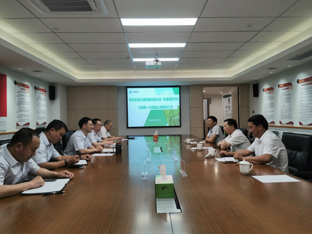 6月12日,大理州政協(xié)副主席、彌渡縣委書記沙偉風攜彌渡縣政協(xié)、縣財政局、文旅局一行到省農(nóng)擔公司調(diào)研座談。公司郭影董事長、廖寅皓副總經(jīng)理及各業(yè)務部門參加了座談交流。