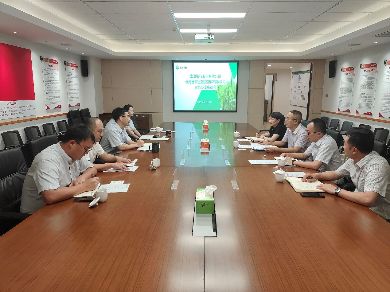 6月16日,云南農(nóng)擔公司與富滇銀行召開業(yè)務(wù)交流座談會。富滇銀行納然副行長、普惠金融部、昆明國防支行,農(nóng)擔公司郭影董事長、杜開波總經(jīng)理、風險控制部、計劃財務(wù)部、戰(zhàn)略發(fā)展部參加了會議。