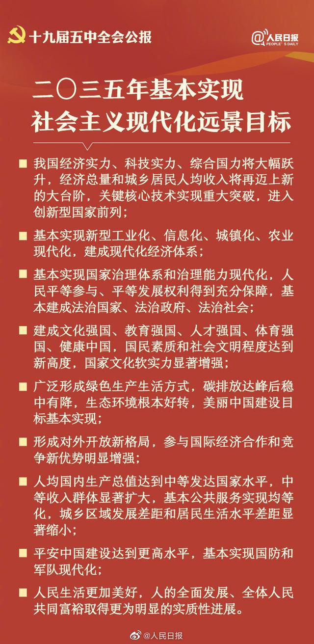 10月29日,中國共產(chǎn)黨第十九屆中央委員會第五次全體會議公報發(fā)布。全會高度評價決勝全面建成小康社會取得的決定性成就,提出了到二〇三五年基本實現(xiàn)社會主義現(xiàn)代化遠景目標以及“十四五”時期經(jīng)濟社會發(fā)展主要目標。中國將如何實現(xiàn)這一宏偉藍圖,14個關鍵詞速讀五中全會公報。