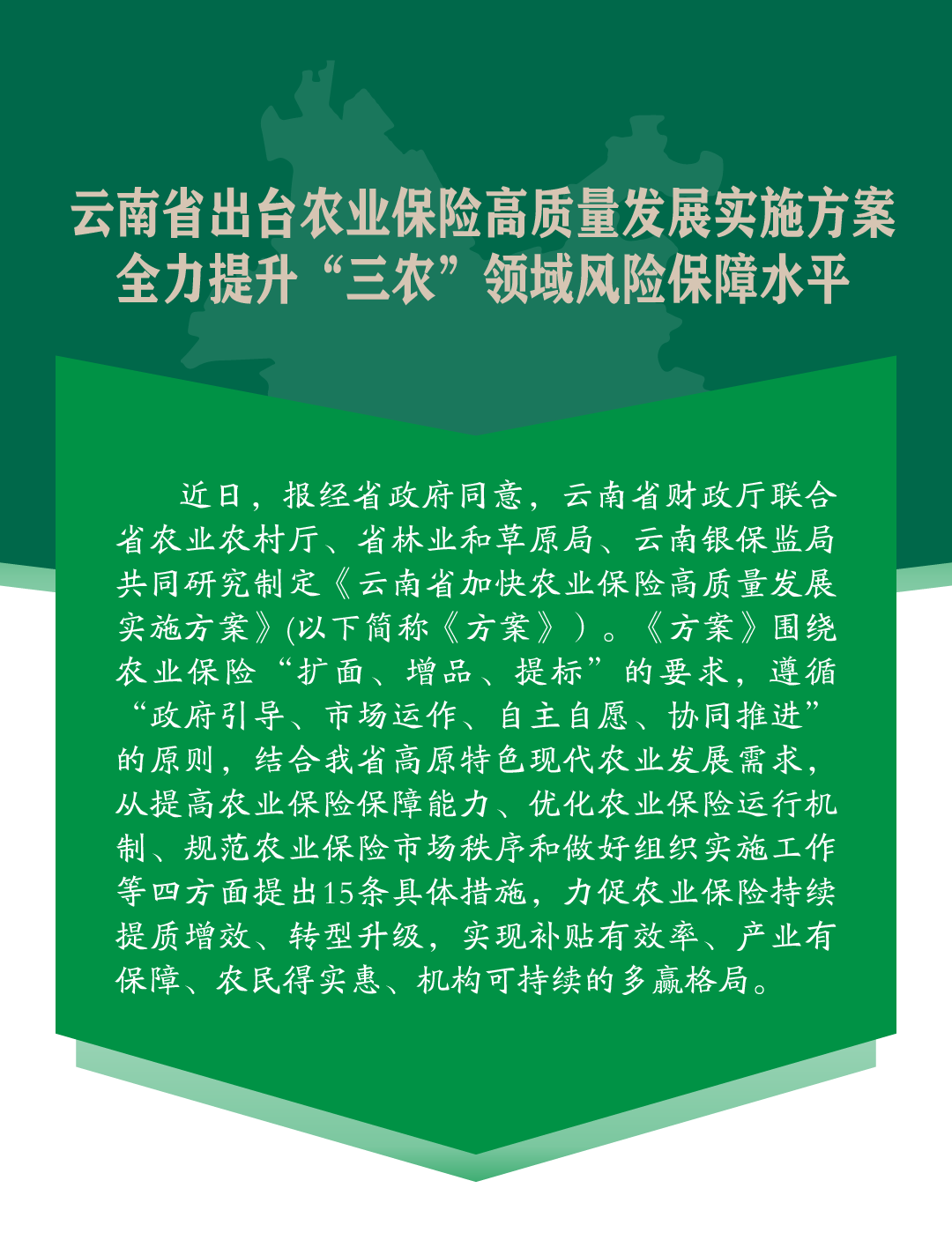 云南省出臺(tái)農(nóng)業(yè)保險(xiǎn)高質(zhì)量發(fā)展實(shí)施方案 全力提升“三農(nóng)”領(lǐng)域風(fēng)險(xiǎn)保障水平