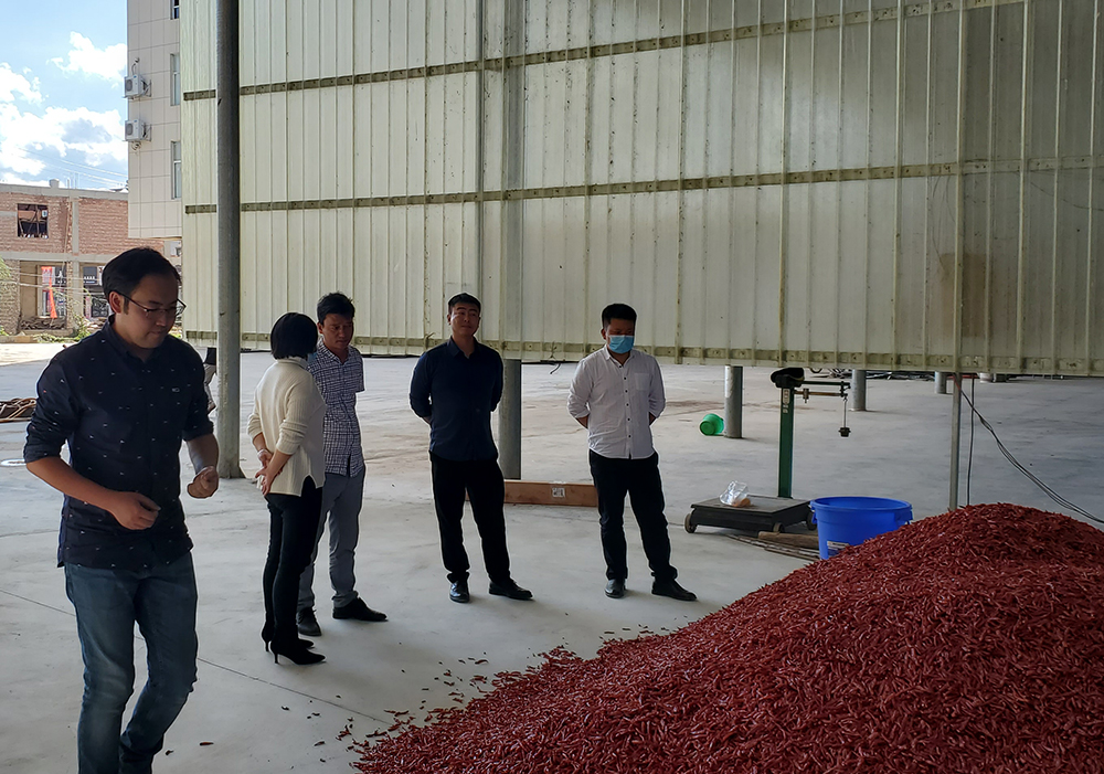 為深入了解硯山縣稼依鎮(zhèn)“辣椒產(chǎn)業(yè)”發(fā)展情況,全面推進(jìn)鄉(xiāng)村振興,加快農(nóng)業(yè)農(nóng)村現(xiàn)代化,2021年11月4日,文山辦事處業(yè)務(wù)主管袁彬攜項(xiàng)目經(jīng)理王忠泉與中國(guó)郵政儲(chǔ)蓄銀行文山州分行副行長(zhǎng)陳文奎、副行長(zhǎng)李洪、小微企業(yè)總經(jīng)理黃繁兵及相關(guān)信貸人員深入硯山縣稼依鎮(zhèn)實(shí)地調(diào)研了解“辣椒產(chǎn)業(yè)”的發(fā)展趨勢(shì),對(duì)部分辣椒貿(mào)易大戶及合作社進(jìn)行貸款政策宣導(dǎo)。