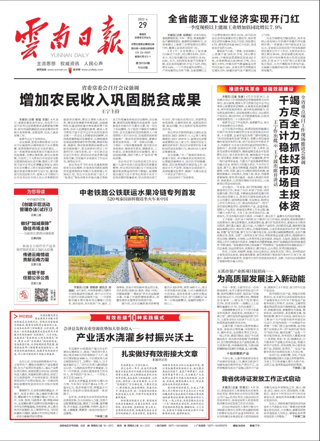 《云南日?qǐng)?bào)》頭版推出