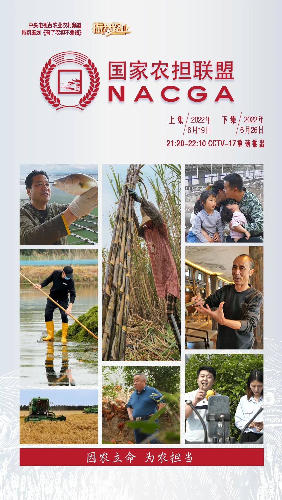 下集將展現(xiàn)四川、廣東、廣西、重慶等省級農擔公司支持新型農業(yè)經營主體的農擔故事。6月26日(周日)晚9點20分于CCTV-17頻道,敬請收看。