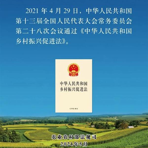 4月29日,十三屆全國人大常委會(huì)第二十八次會(huì)議審議通過《中華人民共和國鄉(xiāng)村振興促進(jìn)法》(以下簡稱鄉(xiāng)村振興促進(jìn)法),并于6月1日起施行。