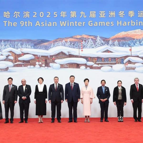 習(xí)近平和彭麗媛為出席哈爾濱第九屆亞洲冬季運動會開幕式的國際貴賓舉行歡迎宴會