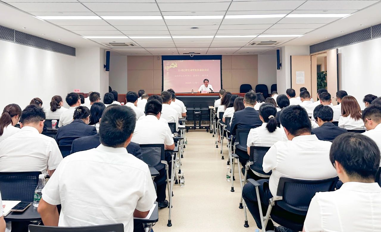 為深入學(xué)習領(lǐng)會(huì )習近平總書(shū)記關(guān)于全面加強黨的紀律建設的重要論述,以及關(guān)于黨紀學(xué)習教育的重要講話(huà)和重要指示精神,7月18日,公司以“現場(chǎng)+視頻”方式召開(kāi)全體職工會(huì )議,公司黨總支部書(shū)記、董事長(cháng)杜開(kāi)波同志為全體職工講授黨紀學(xué)習教育紀律黨課并進(jìn)行集體廉政談話(huà)。省公司全體黨員職工及各分支機構負責人、主管、綜合崗和部分黨員職工現場(chǎng)參會(huì ),各分支機構其他黨員職工以視頻方式參會(huì )。