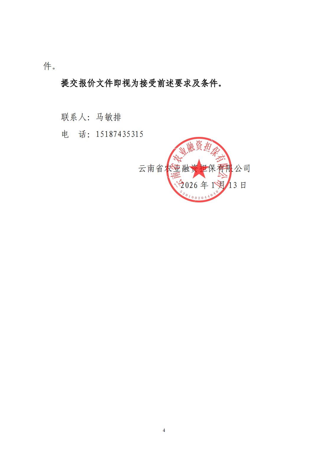 云南省農業(yè)融資擔保有限公司詢(xún)價(jià)公告