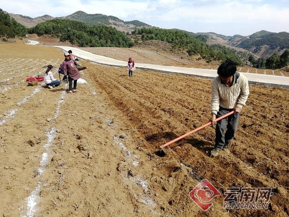 劃線(xiàn)開(kāi)溝、丟種施肥、翻土蓋塘……一年之計在于春,走進(jìn)魯甸縣水磨鎮馬鈴薯種植基地,連片的黃土地已經(jīng)平整翻新,山坡上隨處可見(jiàn)村民們搶趕農時(shí)種植大春馬鈴薯的身影。